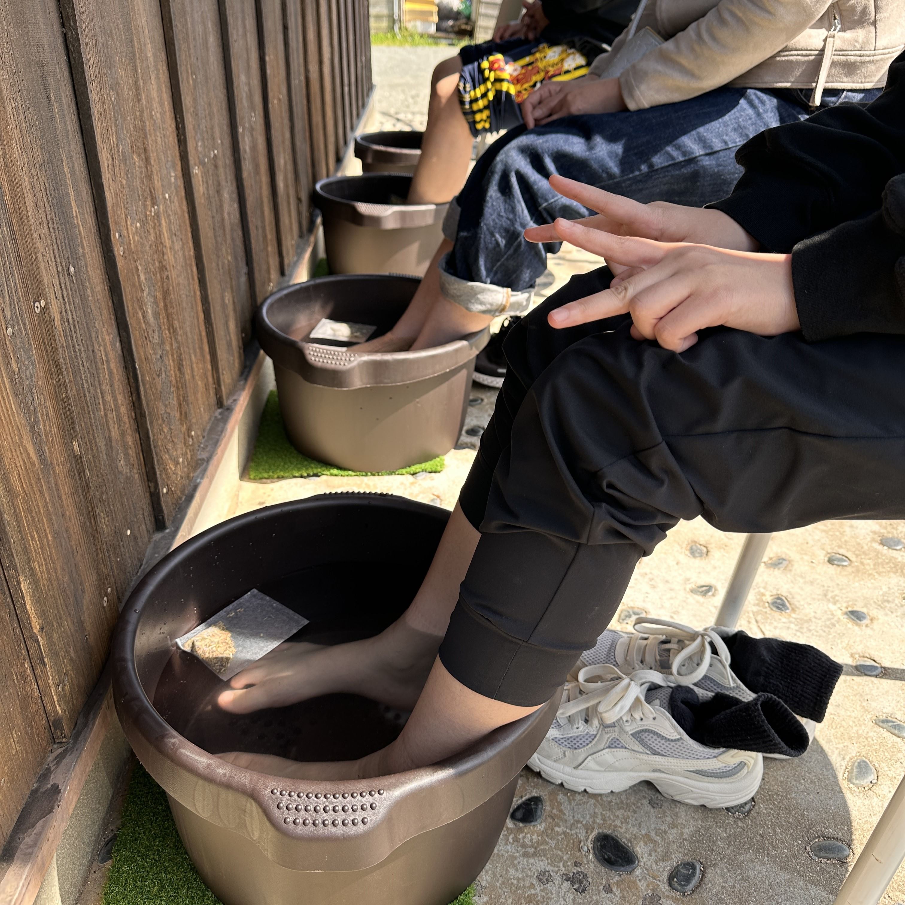座って休む、マッサージする、足湯に浸かる。